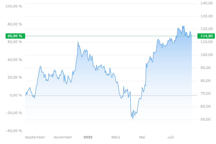 Disclaimer: Wir, die Finanzen.net ZERO GmbH, Ăźbernehmen keine Haftung fĂźr die Richtigkeit, Vollständigkeit und Aktualität der in diesem Beitrag enthaltenen Informationen. Dieser Beitrag stellt weder ein Angebot, eine Aufforderung zum Erwerb oder Verkauf eines Finanzinstruments, noch eine Empfehlung oder Anlageberatung dar. Eine Anlageentscheidung sollte keinesfalls ausschlieĂlich auf die Informationen in diesem Beitrag gestĂźtzt werden. Geldanlagen in Finanzinstrumente sollten immer unter langfristigen Gesichtspunkten und unter BerĂźcksichtigung der persĂśnlichen Kenntnisse, Erfahrungen, finanziellen Verhältnisse und Anlageziele getätigt werden. Anleger sollten bedenken, dass sie bei der Investition in Finanzinstrumente Verluste bis zum Totalverlust des investierten Kapitals (bei einigen Finanzinstrumenten sogar Ăźber das eingesetzte Kapital hinaus) erleiden kĂśnnen. Die Wertentwicklung in der Vergangenheit ist kein verlässlicher Indikator fĂźr die zukĂźnftige Wertentwicklung.