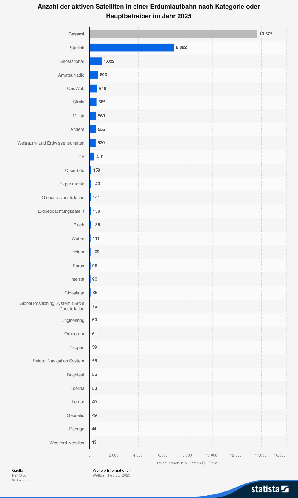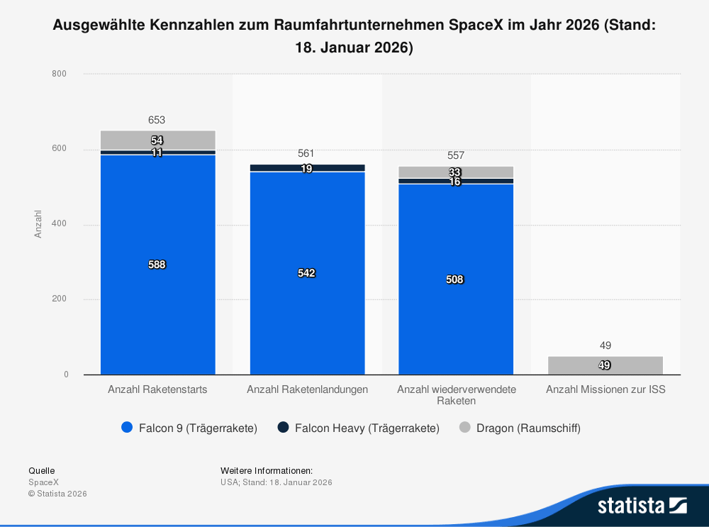 Treiber der Entwicklung ist Starlink. Der Satelliten-Breitbanddienst erzielte 2025 rund 10,4 Milliarden Dollar und damit 69 % des gesamten SpaceX-Umsatzes. Die Abonnentenzahl verdoppelte sich auf über 9 Millionen, jeder zahlt mindestens 600 Dollar pro Jahr. Wer beim IPO im Juni investiert, kauft also im Kern ein Starlink-Abo-Geschäft mit angehängter Raketensparte.
