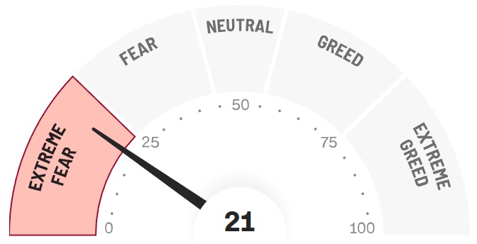 *Der Fear & Greed Index von CNN ist ein Instrument zur Messung der aktuellen Stimmung am Aktienmarkt, das auf dem Prinzip beruht, dass extreme Angst die Aktienkurse senken kann, während extreme Gier sie nach oben treibt. Er stellt Daten aus sieben verschiedenen Indikatoren zusammen, die sich auf das Verhalten des Aktienmarktes beziehen, darunter Marktdynamik, Aktienkursstärke und Marktvolatilität, um einen Wert zwischen 0 (für extreme Angst) und 100 (für extreme Gier) zu ermitteln.