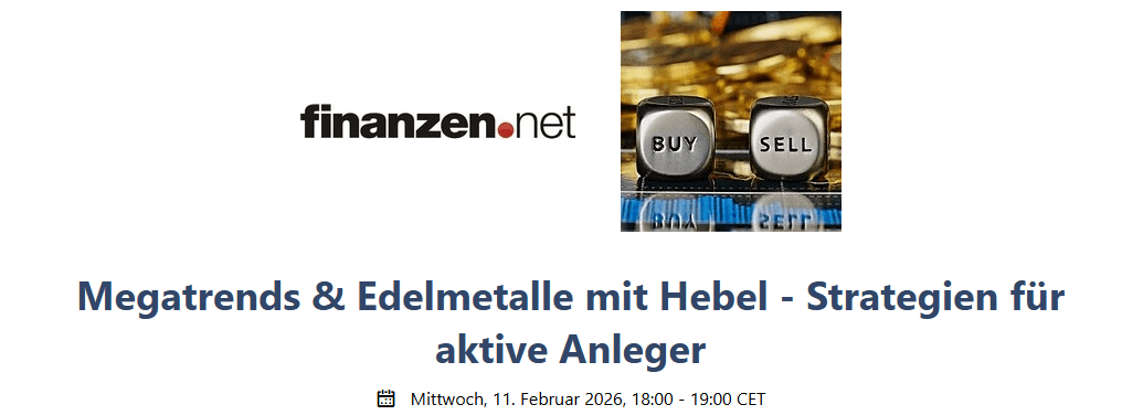 Hast Du Lust, die großen Marktbewegungen nicht nur zu beobachten, sondern aktiv mitzuspielen? Am kommenden Mittwoch, den 11. Februar um 18 Uhr, zeigen wir Dir, wie Du echte strukturelle Megatrends von kurzfristigem Rauschen unterscheidest. Es geht nicht darum, jeder Bewegung hinterherzulaufen, sondern Wachstumschancen gezielt einzuordnen und zu handeln. Markiere Dir diesen Termin fett im Kalender, denn wir machen Schluss mit vagen Vermutungen.