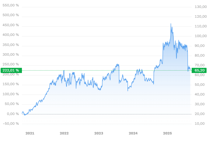 🔒 In einer Welt, in der Roboter und KI-Systeme immer stärker vernetzt sind, ist Sicherheit ein Muss. Mit einer Marktkapitalisierung von 51,7 Mrd. Euro spielt Fortinet in der ersten Liga. Die Profitabilität von über 33 % zeigt, dass das Geschäftsmodell hochmargig ist. Besonders stark sind das Umsatzwachstum von 46,5 % und eine Kursperformance von über 220 % seit Oktober 2020 – klare Signale, dass Cybersicherheit nicht nur Pflicht, sondern auch ein Milliardenmarkt ist.