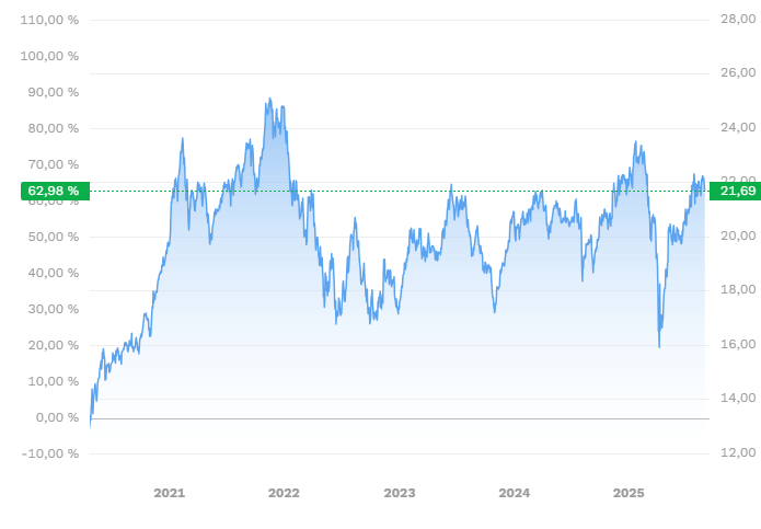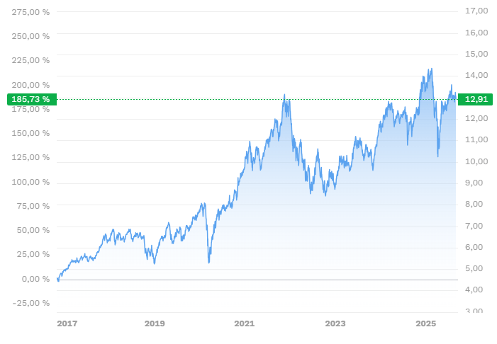 📈 Mit einer 5-Jahres-Performance von rund 61 % (Ø 10 % pro Jahr) ist der iShares-Fonds der klare Gewinner. Besonders stark waren die Jahre 2021 (+30,4 %) und 2023 (+33,8 %). Schwächephasen wie 2022 (–29,9 %) zeigen aber auch, dass Volatilität dazugehört. Der Fonds investiert breit gestreut in über 140 Unternehmen weltweit, darunter NVIDIA, AMD, ABB, Siemens und Intel. Mit einem Fondsvolumen von knapp 3,5 Mrd. Dollar und einer TER von 0,40 % gilt er als solide, kostengünstige Lösung für Anleger, die langfristig vom Robotik-Boom profitieren wollen. Dank thesaurierender Struktur verstärkt sich zudem der Zinseszinseffekt.