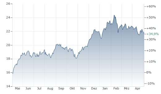 đ Am Chart erkennst Du, wie sich der đđť L&G Cyber Security UCITS ETF im vergangenen Jahr entwickelt hat (Stand: 03.05.2024):