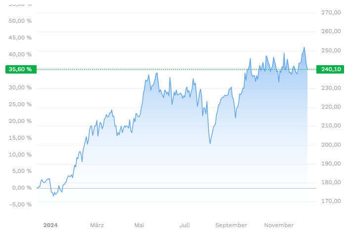 🇺🇸 Die Wiederwahl von Präsident Donald Trump und eine stabile republikanische Mehrheit im Senat und Repräsentantenhaus könnten den US-Märkten zusätzlichen Auftrieb verleihen. Steuersenkungen und Deregulierungen sollen ertragsfreundliche Bedingungen schaffen. Das kann zu einem kräftigen Schub führen, jedoch nur, wenn auch eine breite Marktteilnahme stattfindet.