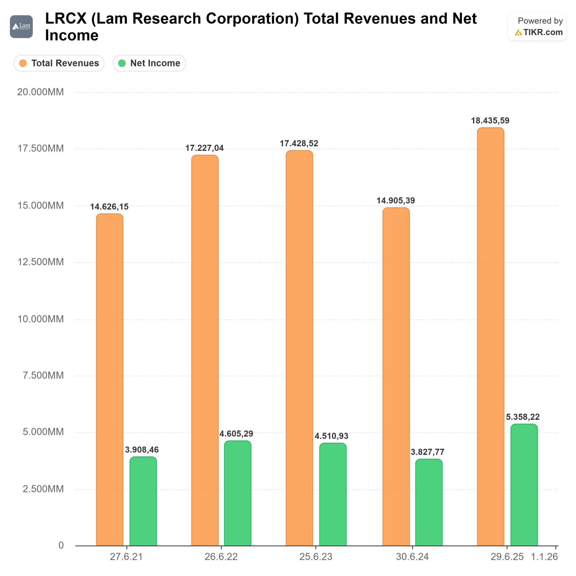 Mit der neuen Dry-Resist-Technologie für die EUV-Lithographie, entwickelt gemeinsam mit ASML, senkt Lam den Materialverbrauch um bis zu 90 % – ein enormer Kostenvorteil für Kunden. Das Umsatzwachstum lag 2025 bei 24 %, der Free Cashflow bei 29 % Marge.