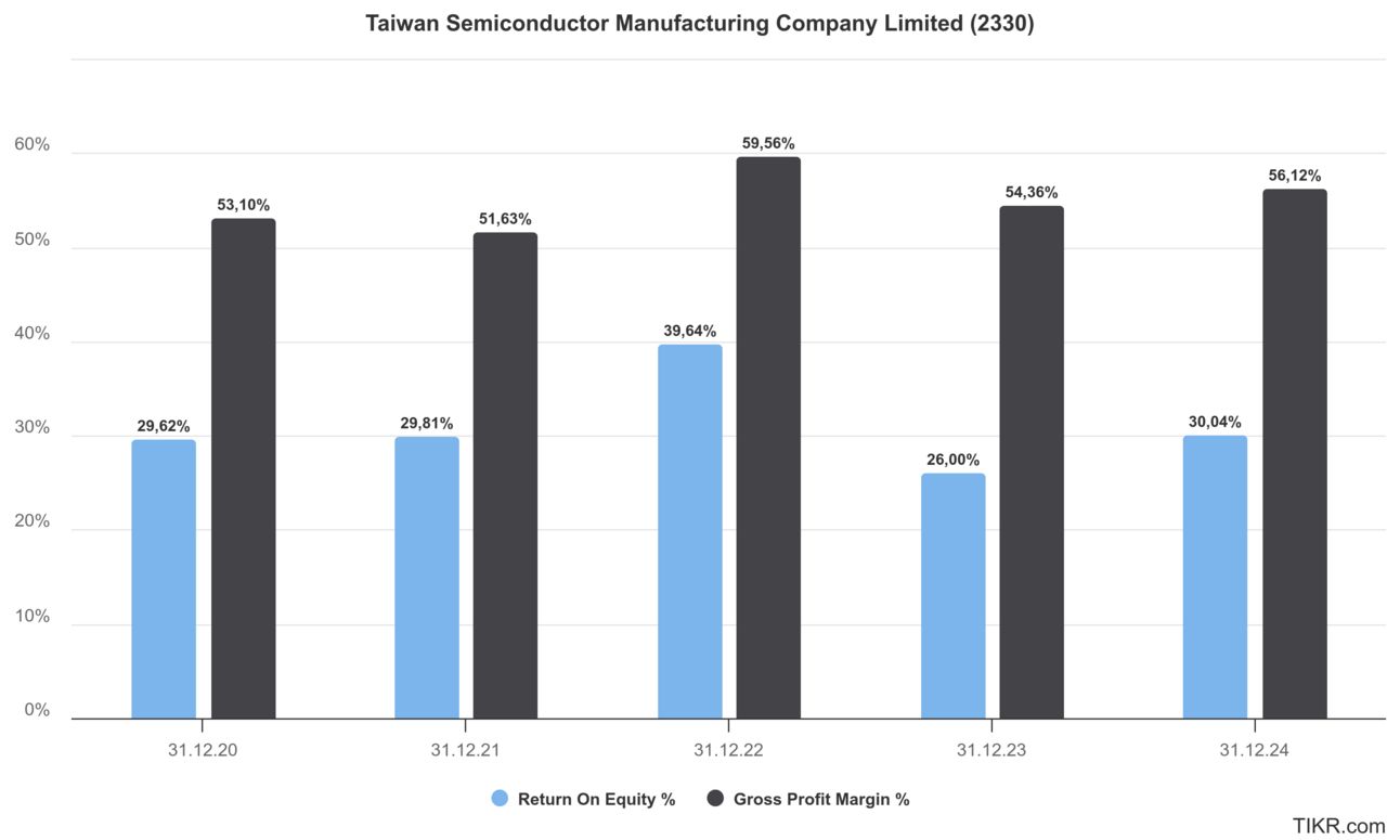👉TSMC ist der unangefochtene Weltmarktführer im Chip-Foundry-Geschäft – über zwei Drittel Marktanteil. Der Umsatz für 2025 wird auf rund 3.660 Mrd. TWD geschätzt (+26,5 %), dank KI und Hochleistungschips. Der Burggraben? 3nm- und bald 2nm-Technologie, die kaum ein anderer Anbieter beherrscht. Das Unternehmen investiert 2025 bis zu 42 Mrd. US-Dollar – so viel wie kein anderer Chip-Hersteller.
