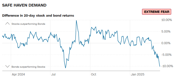 *Die Safe-Haven-Nachfrage zeigt den Unterschied zwischen den Renditen von Staatsanleihen und Aktien in den letzten 20 Handelstagen. Anleihen schneiden besser ab, wenn die Anleger verängstigt sind.