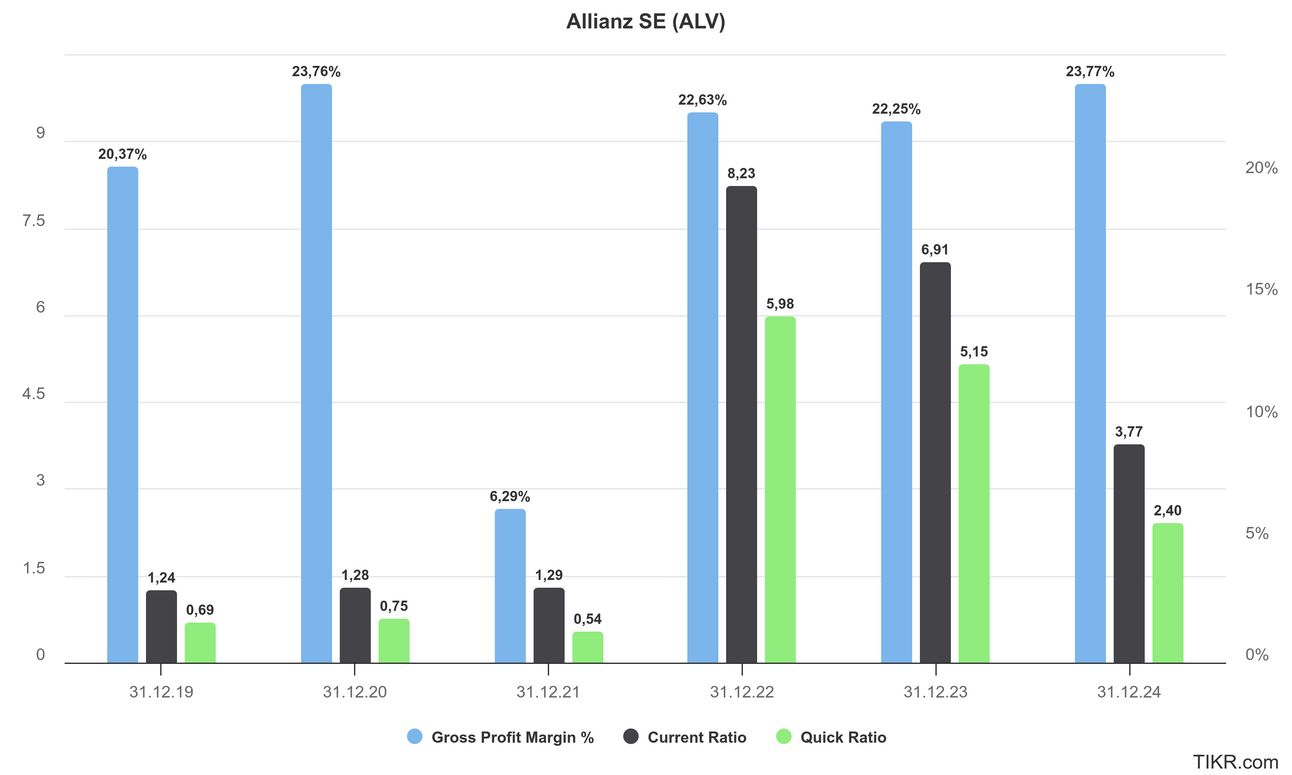 🏗️ Viele Wettbewerber kämpfen noch mit Altgarantien, Allianz hat das Problem längst eingepreist. Die Neugeschäftsmarge im Leben-Segment stieg 2024 auf 5,5 %, jegliche Police ist damit bereits im Abschluss profitabel. Wem 5,5 % niedrig vorkommt: Im Peer-Vergleich liegt der Wert 80 Basispunkte über dem Median.