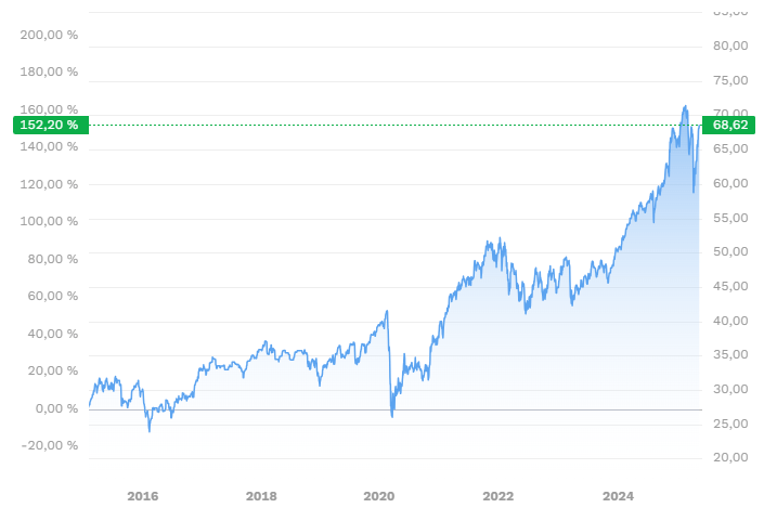 👉Der Fonds wird von Mac Elatab und Lee Sotos verwaltet und nutzt Fidelitys globales Analystennetzwerk. Die USA dominieren mit über 60 % Anteil, gefolgt von Deutschland, Kanada und Asien. Die 1-Jahres-Rendite liegt bei +19,7 %, über 5 Jahre bei +18,7 % p.a., allerdings mit einer leichten Underperformance gegenüber der Benchmark. Die laufenden Kosten betragen 1,9 % p.a., die jährliche Ausschüttung liegt bei rund 0,14 %. Für Anleger mit langfristigem Horizont und Sektorinteresse bietet 👉dieser Fonds womöglich ein solides, aber kostenintensives Investment in globale Finanzmärkte.