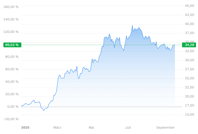Die Übernahme der Sobek Group für rund 132 Mio. Euro war ein Gamechanger: elektrische Antriebe für Drohnen, bereits im Einsatz in der Ukraine. Für 2025 rechnet Deutz mit einem Umsatz im mittleren zweistelligen Millionenbereich aus Defense-Aufträgen. Die Aktie explodierte seit Jahresbeginn 2025 um über 132 %.