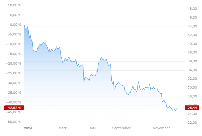 💼 Auch die Aktie von 👉Adecco hat mit einem Minus von 42 % stark nachgegeben. Mit einer Eigenkapitalquote von 28,97 % und einer moderaten Free-Cashflow-Marge von 1,81 % scheint das Unternehmen stabil, wenn auch nicht spektakulär. Wer an eine Erholung des Arbeitsmarkts glaubt, könnte hier Potenzial entdecken.