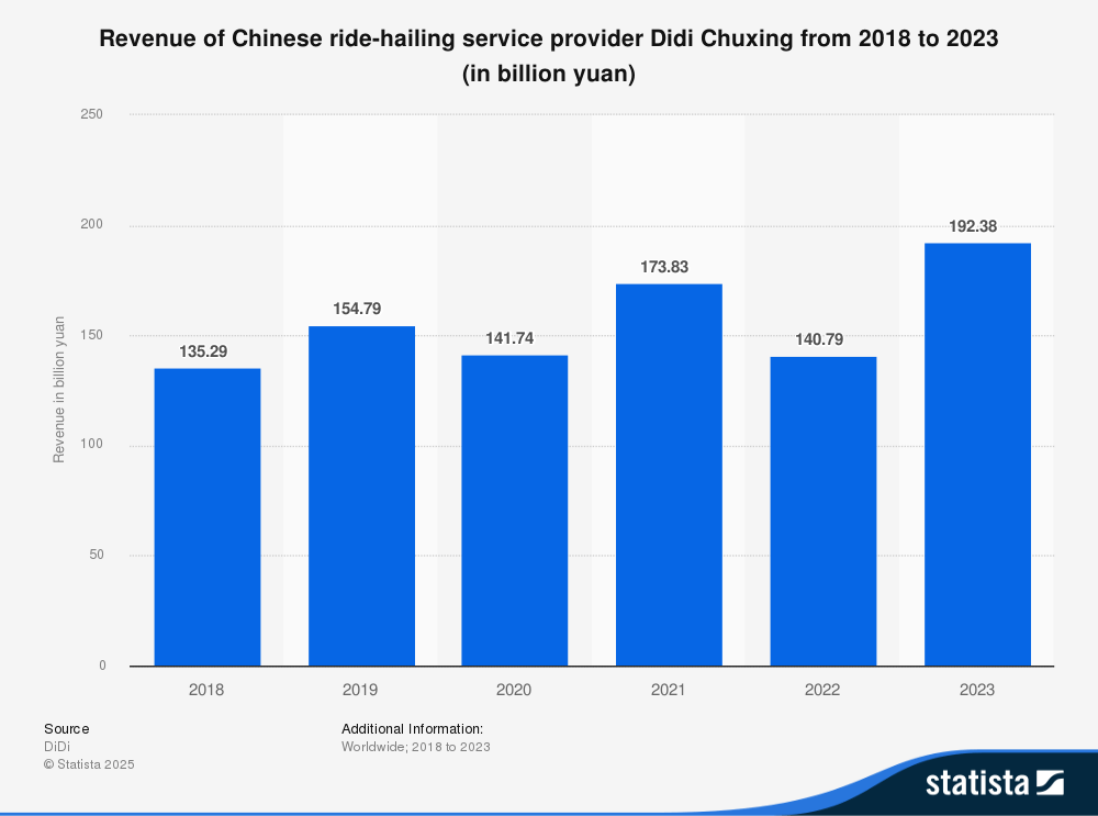 🌏 China bleibt der größte Einzelmarkt im Ridesharing. Didi Chuxing kontrolliert mit 56,8 Mrd. US-Dollar Umsatz 2025 den Markt, wächst nach regulatorischem Gegenwind wieder und fährt im ersten Quartal 2025 satte 2,4 Mrd. Yuan Nettogewinn ein.