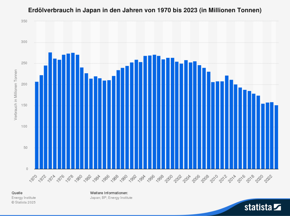 Am 18. März 2026 erreichte der durchschnittliche Benzinpreis in Japan 190,80 Yen pro Liter – der höchste Stand seit Beginn der Aufzeichnungen im Jahr 1990. Das entspricht einem Wochenanstieg von 18 %. Brent-Rohöl kletterte zeitweise auf über 114 Dollar je Barrel. Die Regierung reagierte mit Subventionen und der Freigabe strategischer Reserven, um den Preisanstieg auf rund 170 Yen zu deckeln. Doch das ist Symptombekämpfung, keine Lösung.