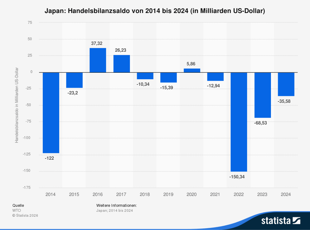 Jetzt kommt der nächste Schlag hinzu: Düngemittel lassen sich nicht durch die blockierte Meerenge transportieren. Das treibt die Importpreise für Nahrungsmittel weiter. Sanae Takaichi wurde im Oktober 2025 genau mit dem Versprechen gewählt, die Lebensmittelinflation zu senken – die damals bereits über 7 % lag. Stattdessen steht sie heute vor einem drohenden Rückfall in die Rezession.