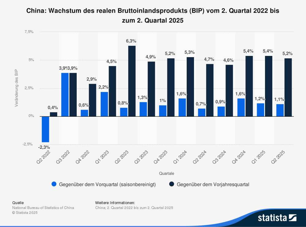 👉 Besonders robust: Indien mit einem satten BIP-Wachstum von 7,4 % im ersten Quartal. Kein Wunder, dass viele Anleger das Land als „sicheren Hafen“ betrachten – getragen von einer jungen, konsumfreudigen Bevölkerung und einer weniger exportabhängigen Wirtschaft.