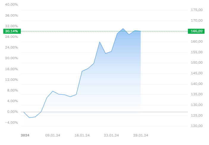 Umsatzwachstum: Die Aktie hat bereits einen ordentlichen Schub hinter sich mit mehr als 30 % Plus seit Jahresbeginn. Dieser Anstieg steht in engem Zusammenhang mit AMDs Fortschritten im Bereich KI-Chips. AMD-Chefin Lisa Su hat große Marktchancen prognostiziert, und die Zahlen scheinen ihr recht zu geben.