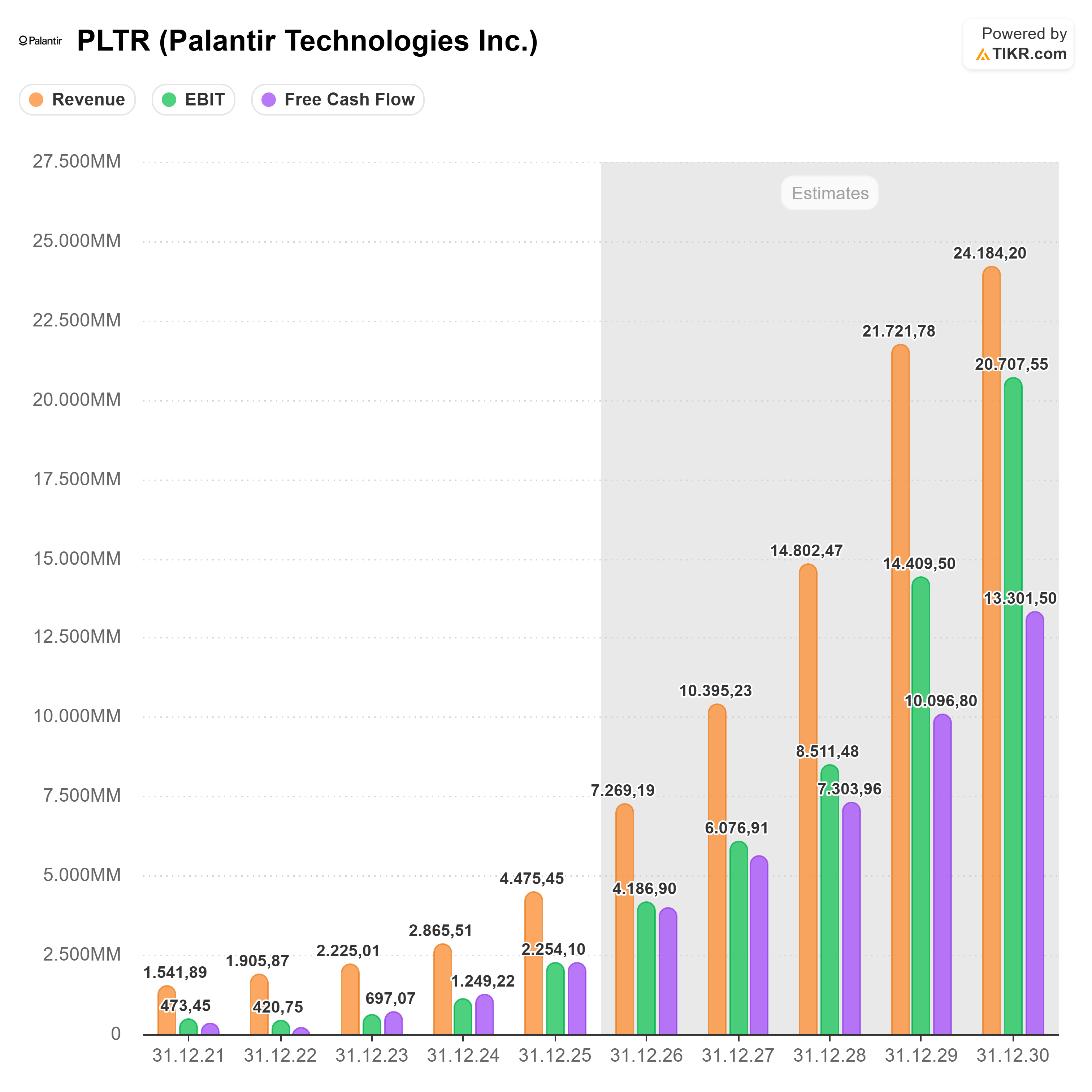 👉Palantirs US-Geschäft wuchs im vierten Quartal 2025 um 137 % gegenüber dem Vorjahr. Das ist der stärkste Wert in der Unternehmensgeschichte, erzielt in demselben Quartal, in dem Anthropic seinen explosiven ARR-Anstieg meldete. Der Gesamtumsatz für das Geschäftsjahr 2025 belief sich auf 4,475 Milliarden Dollar, ein Plus von 56 % gegenüber dem Vorjahr. Und für 2026 hat Palantir einen Umsatz von über 7,1 Milliarden Dollar angekündigt, was einem weiteren Wachstum von rund 61 % entspräche.