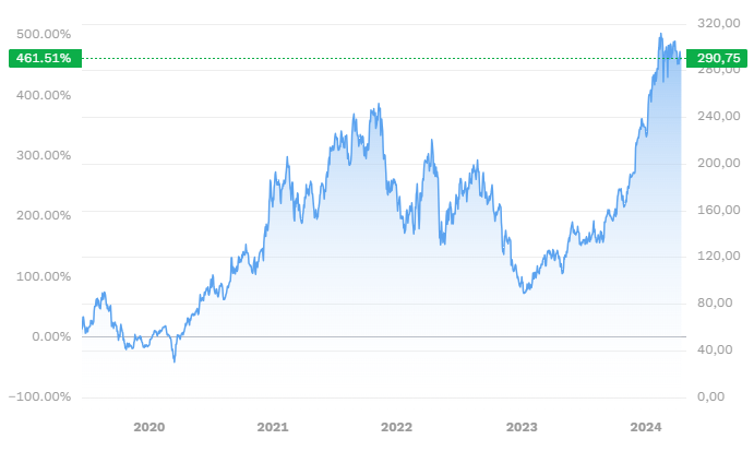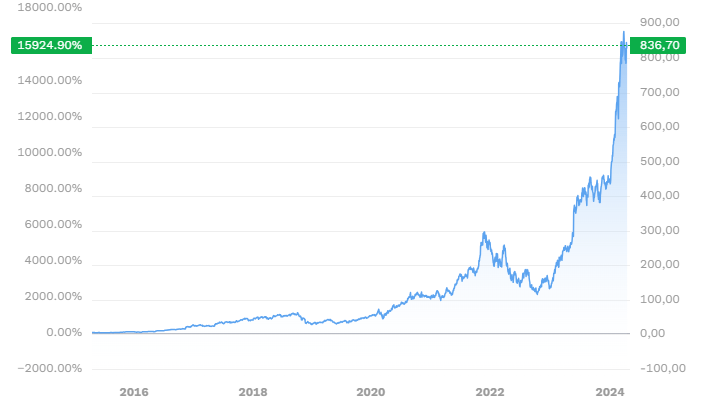 Wachstumsrate: Nvidia, bekannt für seine führende Rolle in der Entwicklung von Grafikprozessoren, wird voraussichtlich ein Umsatzwachstum von rund 60 % im Kalenderjahr 2024 verzeichnen. Das sagen zumindest einige Analysten.