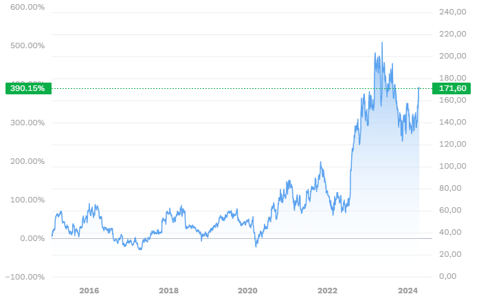 PEG-Ratio: Mit einer PEG-Ratio von nur 0,23 – was niedrig ist – stellt 👉Nvidia eine attraktive Option für Wachstumsinvestoren dar. Die Aktie wird zu etwa dem 35-fachen der geschätzten Gewinne für 2024 gehandelt, was im Vergleich zu ihrem Wachstumspotenzial als günstig erscheint.