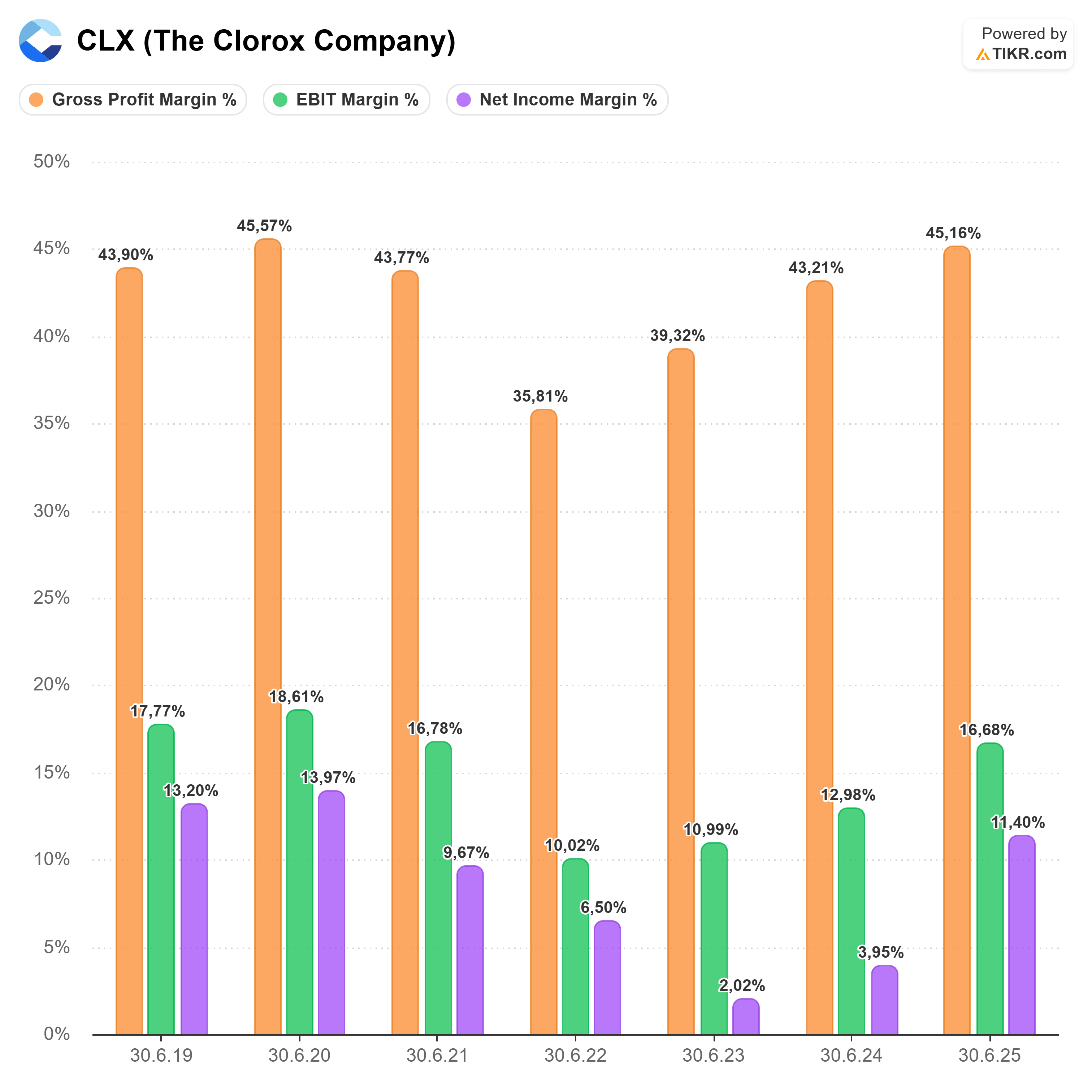 👉Clorox ist der Inbegriff einer psychologischen Verteidigungslinie. In unsicheren Zeiten greifen Verbraucher instinktiv zu Marken, denen sie seit Jahrzehnten vertrauen. Die Firma konnte ihre Bruttomarge im letzten Jahr auf über 45 % steigern. Das bedeutet, dass Clorox die Preise erhöhen kann, ohne dass die Kunden zur billigen Konkurrenz flüchten. Der Nettogewinn explodierte zuletzt förmlich nach oben.
