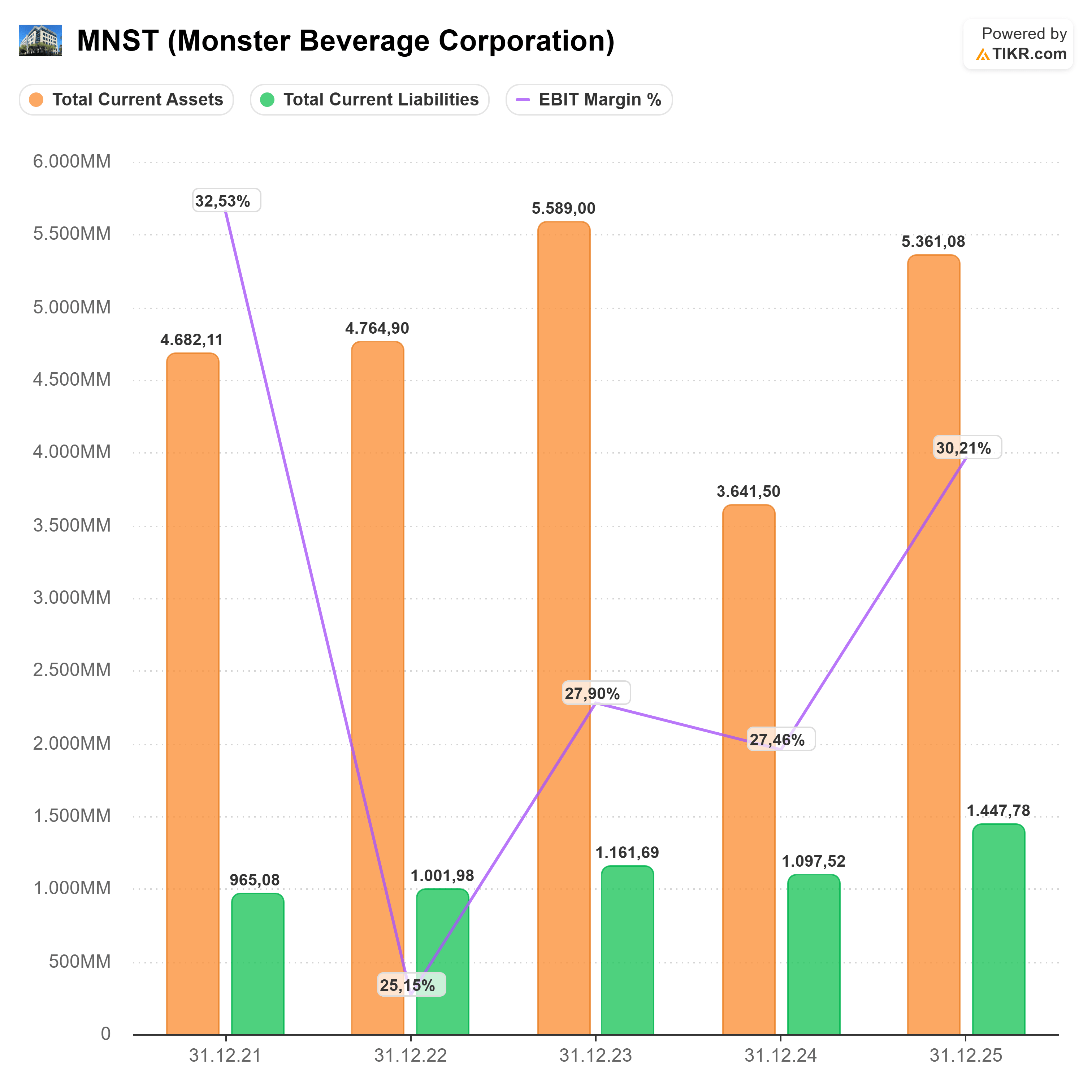 👉Monster Beverage ist kein klassischer Dividendenzahler, aber eine Qualitätsmaschine. Die Firma hält fast 40 % am weltweiten Markt für Energy-Drinks. Ihre EBIT-Marge von 30 % lässt den Durchschnitt des S&P 500 mit seinen 18 % vor Neid erblassen. Monster hat praktisch keine Schulden und sitzt auf einem Berg aus Bargeld. Die Partnerschaft mit 👉Coca-Cola garantiert, dass die schwarzen Dosen in über 200 Ländern im Regal stehen.