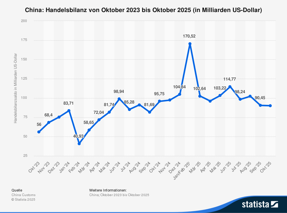 🐉 China bietet Dir eine andere Art Investment: eine fragile Erholung nach Jahren der Underperformance. Entspannungssignale im Zollstreit mit den USA, stärkere Konsumausgaben rund um Feiertage und die wachsende Bedeutung des Renminbi im Welthandel sorgen für Rückenwind. Gleichzeitig bleibt der Immobiliensektor ein systemisches Risiko. Hier benötigst Du einen langen Atem und musst akzeptieren, dass Politik und Regulierung jederzeit für Volatilität sorgen können.