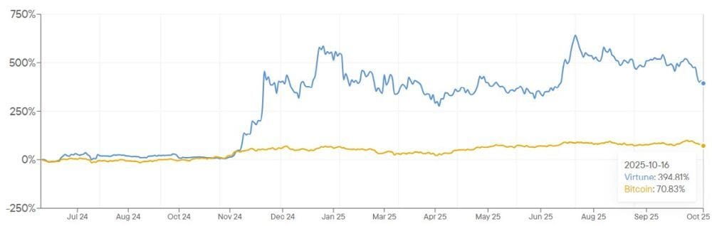 In der nachfolgenden Grafik kannst Du die Wertentwicklung des 👉🏻 Virtune XRP ETP seit Auflage im Vergleich zu der des Bitcoins sehen.