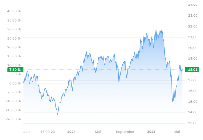 📈 Seit Auflage 2016 erzielte der ETF eine jährliche Rendite von 13,21 %. 2023 brachte +38,49 %, 2022 jedoch -34,15 %. Die Volatilität liegt bei rund 23 %, der maximale Drawdown bei -44,6 %. Also: Spannender Wachstumsfaktor, aber auch Schwankungen.