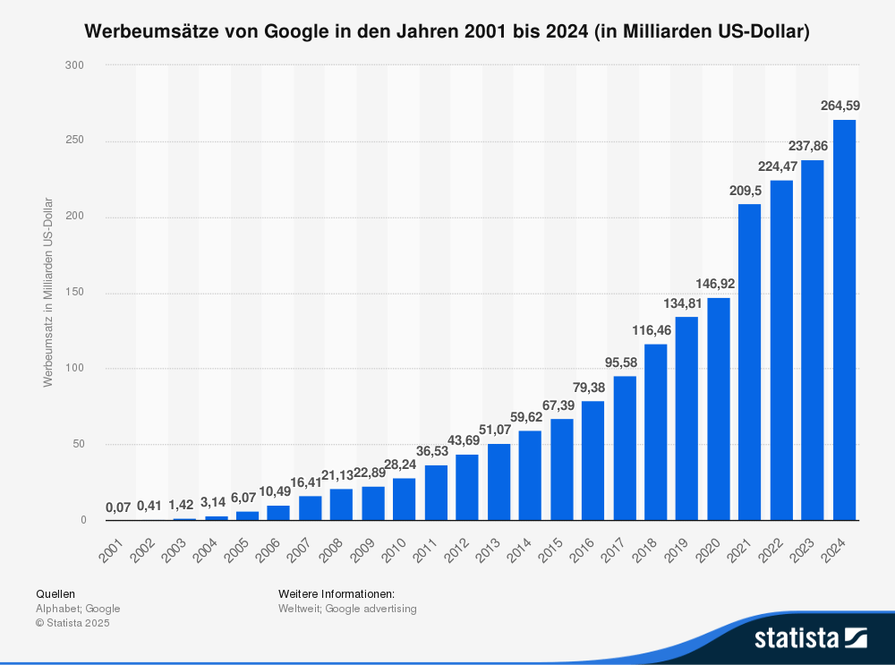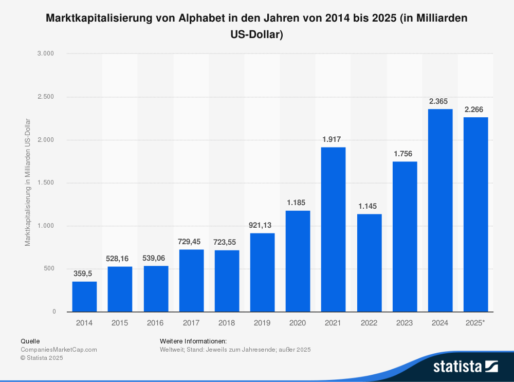 📊 Trotz aller Risiken bleibt Alphabet ein finanzielles Schwergewicht. Allein im zweiten Quartal 2025 erzielte der Konzern 96,4 Mrd. US-Dollar Umsatz, ein Plus von fast 14 % gegenüber dem Vorjahr.