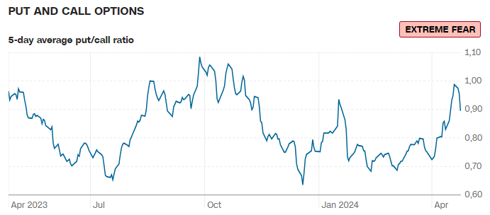 *Die Put/Call-Ratio ist ein Indikator, der das Verhältnis von Verkaufsoptionen (Puts) zu Kaufoptionen (Calls) misst. Puts ermöglichen es Investoren, Wertpapiere zu einem festgelegten Preis zu verkaufen, während Calls das Recht zum Kauf bieten. Ein steigendes Verhältnis von Puts zu Calls deutet oft darauf hin, dass Investoren zunehmend besorgt sind. Eine Ratio über 1 wird als bearish angesehen, da sie darauf hindeutet, dass mehr Investoren auf fallende als auf steigende Kurse setzen.