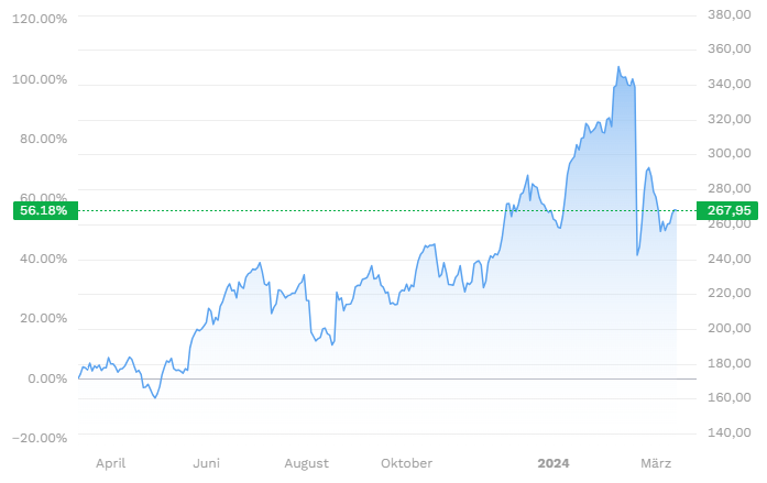 Kursentwicklung letzte 12 Monate: +155,32 %