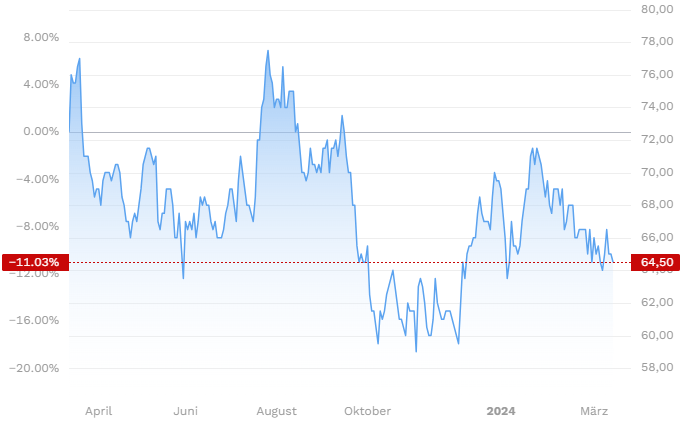Kursentwicklung letzte 12 Monate: +13,70 %