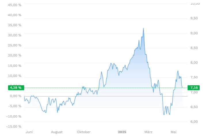 Die jährliche Kostenquote (TER) liegt bei 0,35 %. Als thesaurierender ETF eignet er sich besonders für langfristige Anleger, die auf Kapitalwachstum setzen. Die 3-Jahres-Performance von +13,87 % zeigt das Potenzial des Sektors – trotz kurzfristiger Rückschläge. Seit Frühjahr 2019 ging es um 19 % nach oben.