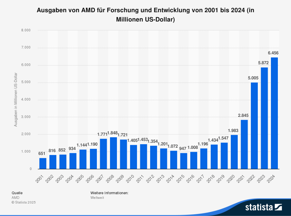 🧬 Ein weiterer Wachstumsmotor ist AMDs anhaltende Investition in Forschung und Entwicklung. Der Konzern positioniert sich gezielt in neuen Technologien wie adaptives Computing, energieeffiziente High-End-Chips und softwaregestützte Hardwareoptimierung.