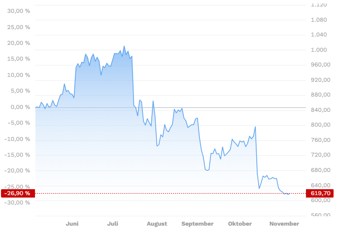 📉 Die ASML-Aktie hat seit dem Frühjahr rund 27 % verloren und nähert sich vielleicht einem spannenden Einstiegspunkt. Die Euphorie um KI-Aktien führte zu einer Überbewertung, die nun korrigiert wurde. Doch die Frage ist: Ist jetzt wirklich der richtige Zeitpunkt, um auf ASML zu setzen?