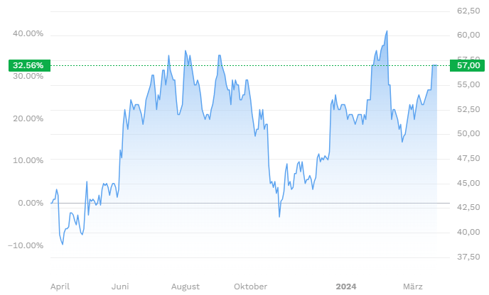 Potenzial zur Verdoppelung: Bei einem aktuellen Kurs von rund 56 US-Dollar sieht Greenhaven die Möglichkeit, dass sich der Kurs der Aktie in den nächsten zwei Jahren verdoppeln könnte.
